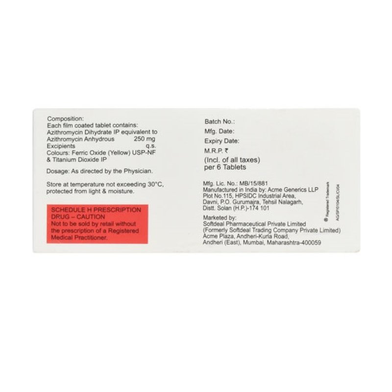 | Δοσολογία (ιατρική) | Συνήθως 500 mg την πρώτη ημέρα και στη συνέχεια 250 mg ημερησίως για 4 ημέρες ή σύμφωνα με τις οδηγίες του γιατρού. |